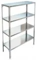 Стеллажи представляют собой универсальную стеллажную конструкцию из рам (двух стоек, соединенные горизонтальными стяжками с помощью самонарезающих винтов) и полок с креплениями к стойкам на зацепах.