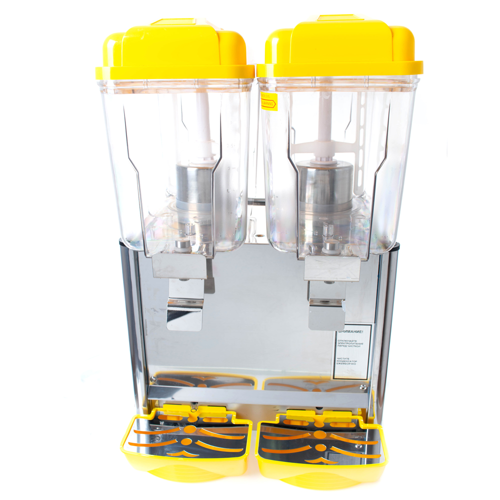 Предназначенные для напитков стеклянные ёмкости закрываются пластмассовыми крышками. Они, как и фигурные краники, привлекают дополнительное внимание к сокоохладителю.
