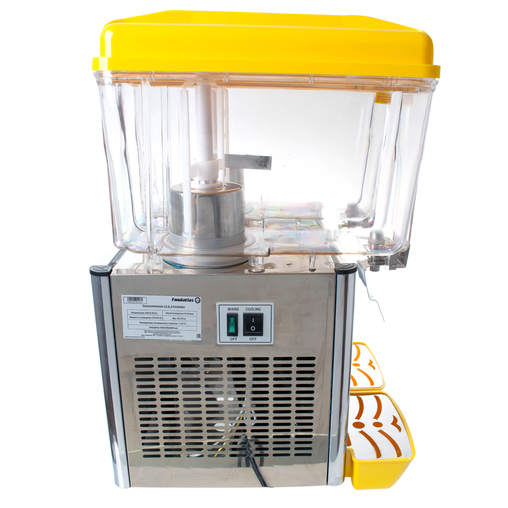 Сокоохладитель 12 PL-2 Foodatlas — специализированное устройство, предназначенное для подачи предварительно охлажденных напитков. Устройство хранит и разливает охлажденную воду, имеющую фруктовый вкус, морсы, соки. Оборудование часто используется в барах, кафе и в столовых.