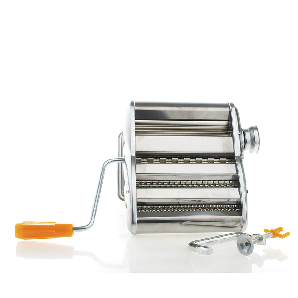 Ручная тестораскатка FLY3150 не требует подключения к электричеству, что делает её полностью автономным инструментом для приготовления свежей пасты, лапши и других мучных изделий высокого качества.