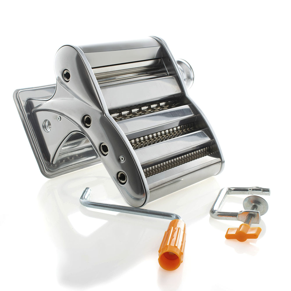 Тестораскатка-лапшерезка ручная Foodatlas FLY3150 — это компактное устройство для раскатки теста, а также нарезки спагетти, равиоли, домашней лапши и других макаронных изделий. Модель предназначена для использования на предприятиях общественного питания (кафе, столовые) и в небольших производствах мучных полуфабрикатов. Простая и надёжная конструкция с ручным приводом позволяет быстро получать тестовые пласты заданной толщины без подключения к электросети.